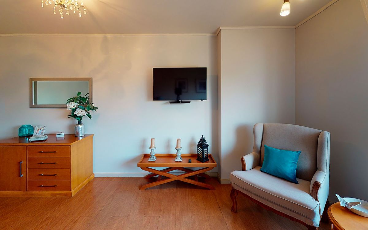 Ubicada a pasos del pueblito Los Domínicos, nuestra residencia para personas mayores ha sido diseñada especialmente para los adultos mayores y sus necesidades, además de contar con un equipo de profesionales a disposición 24/7. Tenemos todo lo necesario para hacer que nuestros residentes y sus visitas vivan gratamente el día a día; jardines, terrazas, comedor, estacionamientos y una imponente vista precordillerana. En Acalis Los Domínicos la familia y los amigos son claves en la vida de nuestra residencia.